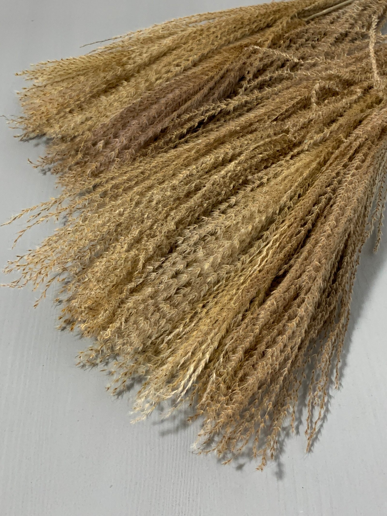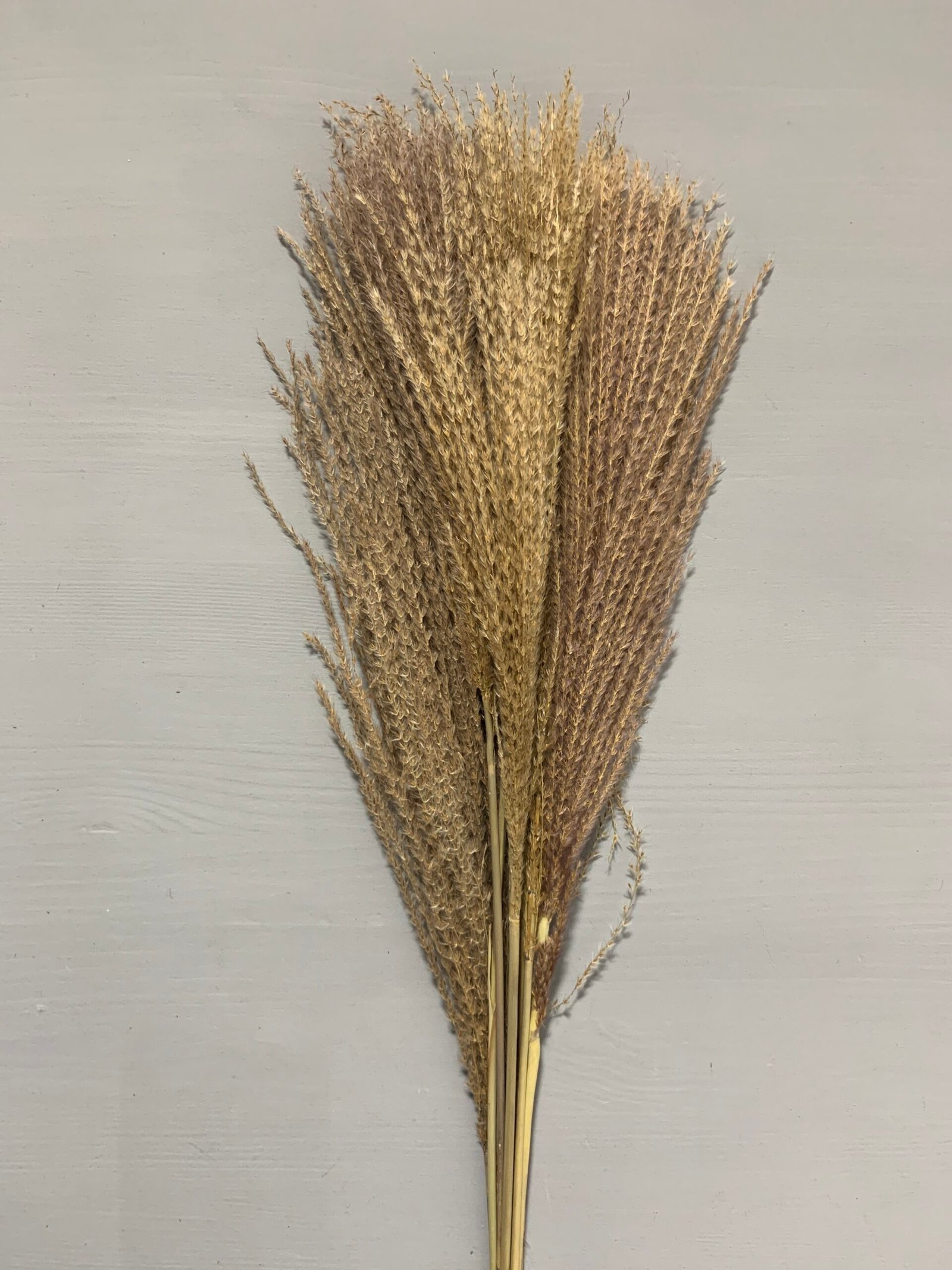 Міскантус жорсткий натуральний — стильний сухоцвіт з природною текстурою, який додає простору легкості та естетики. Пишні колоски довжиною 25–40 см створюють відчуття руху й природної гармонії в будь-якій композиції. Ідеальний для інтер’єрного декору, фотозон, букетів та сезонних флористичних рішень.