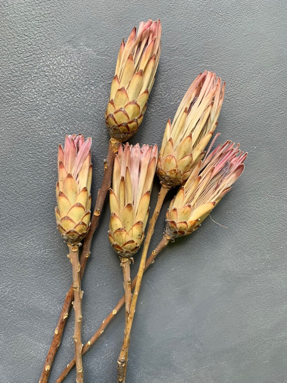 Кожен бутон — це великий, фактурний акцент, що миттєво привертає до себе увагу і стає серцем будь-якої композиції. Як сухоцвіт, протея є неймовірно довговічною, що дозволяє їй прикрашати ваш інтер’єр роками, не втрачаючи своєї екзотичної краси та форми.