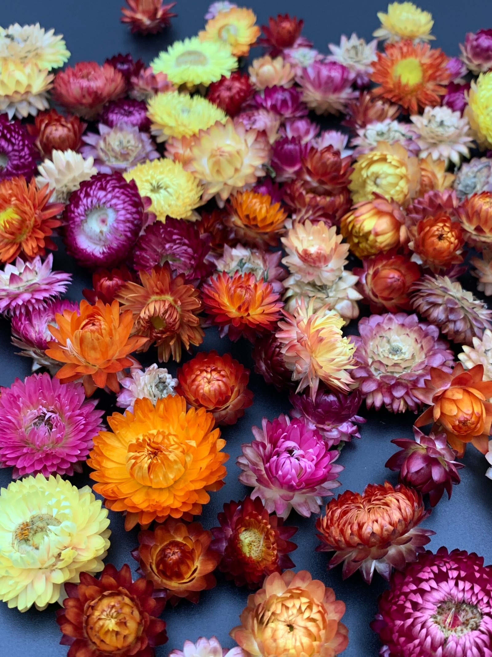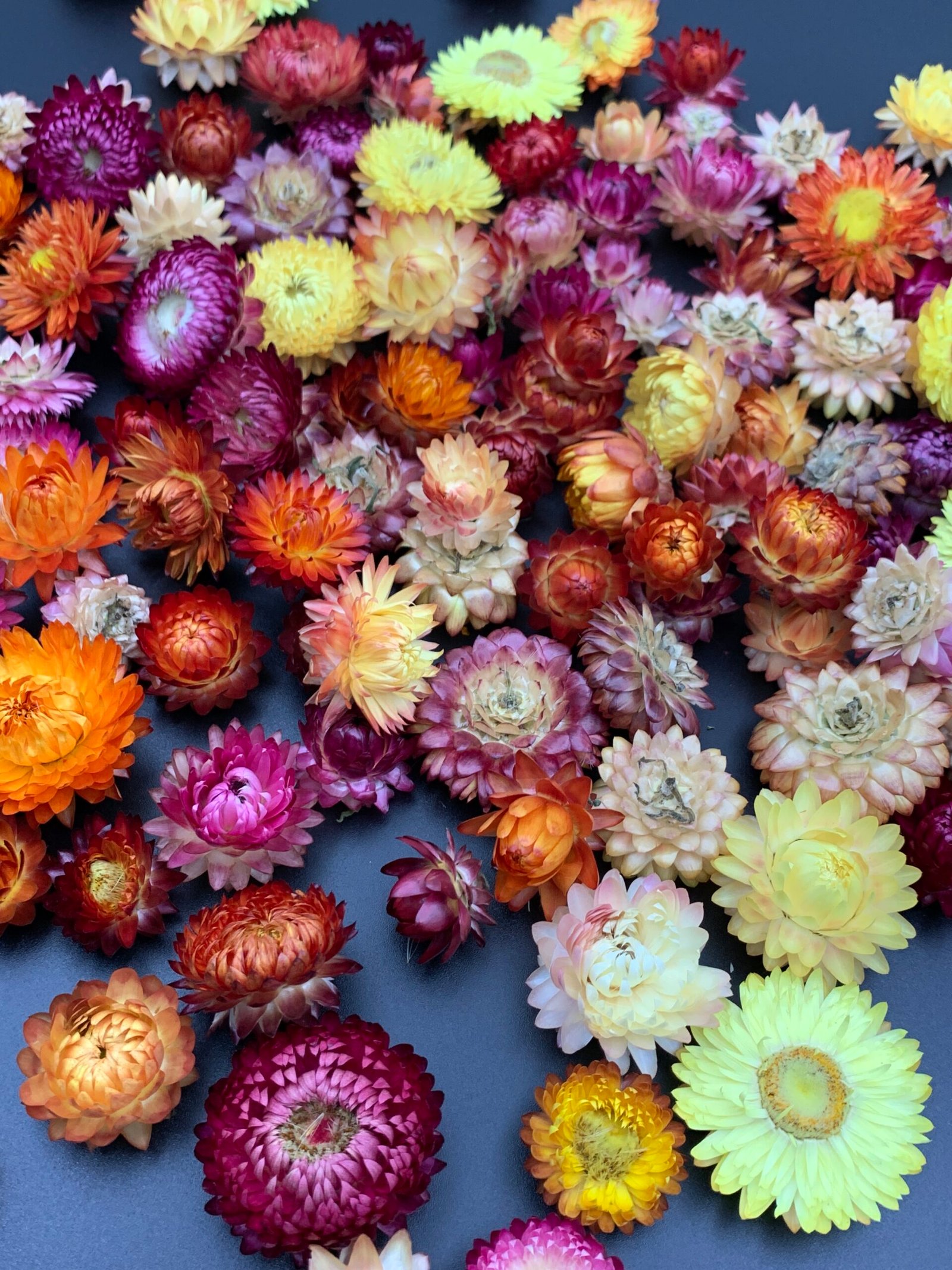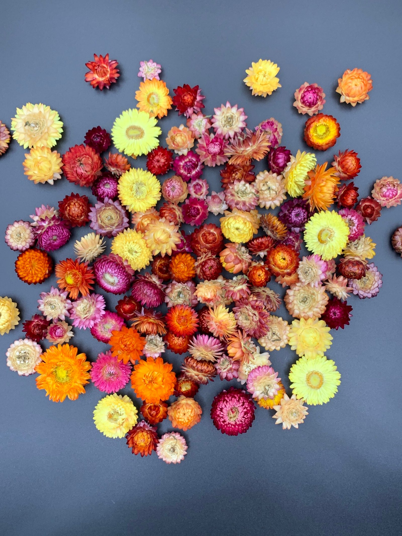 Геліхризум МІКС — набір із 100 яскравих природних головок сухоцвіту діаметром 1.5–3 см. Чудово підходить для флористики, творчих проєктів та інтер’єрного декору. Міцний, фактурний матеріал, який зберігає колір і форму роками.