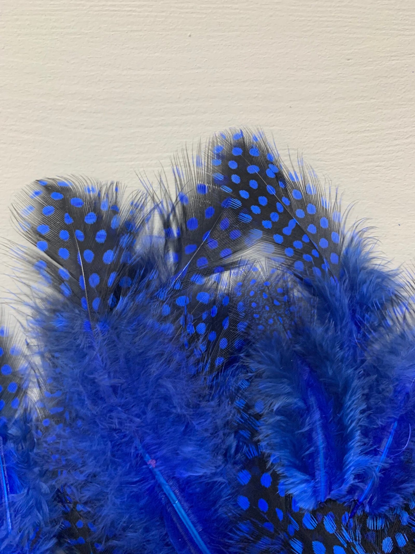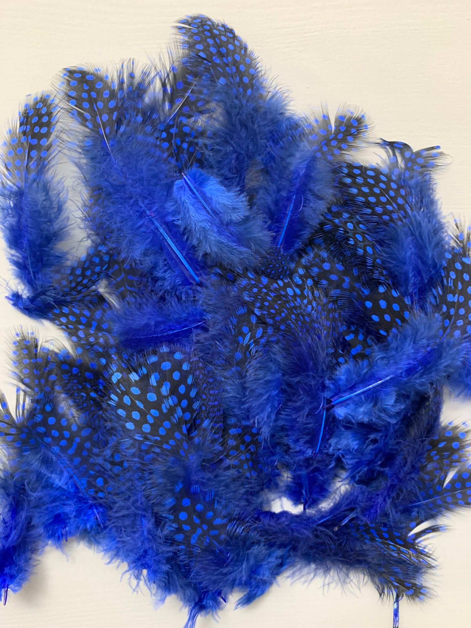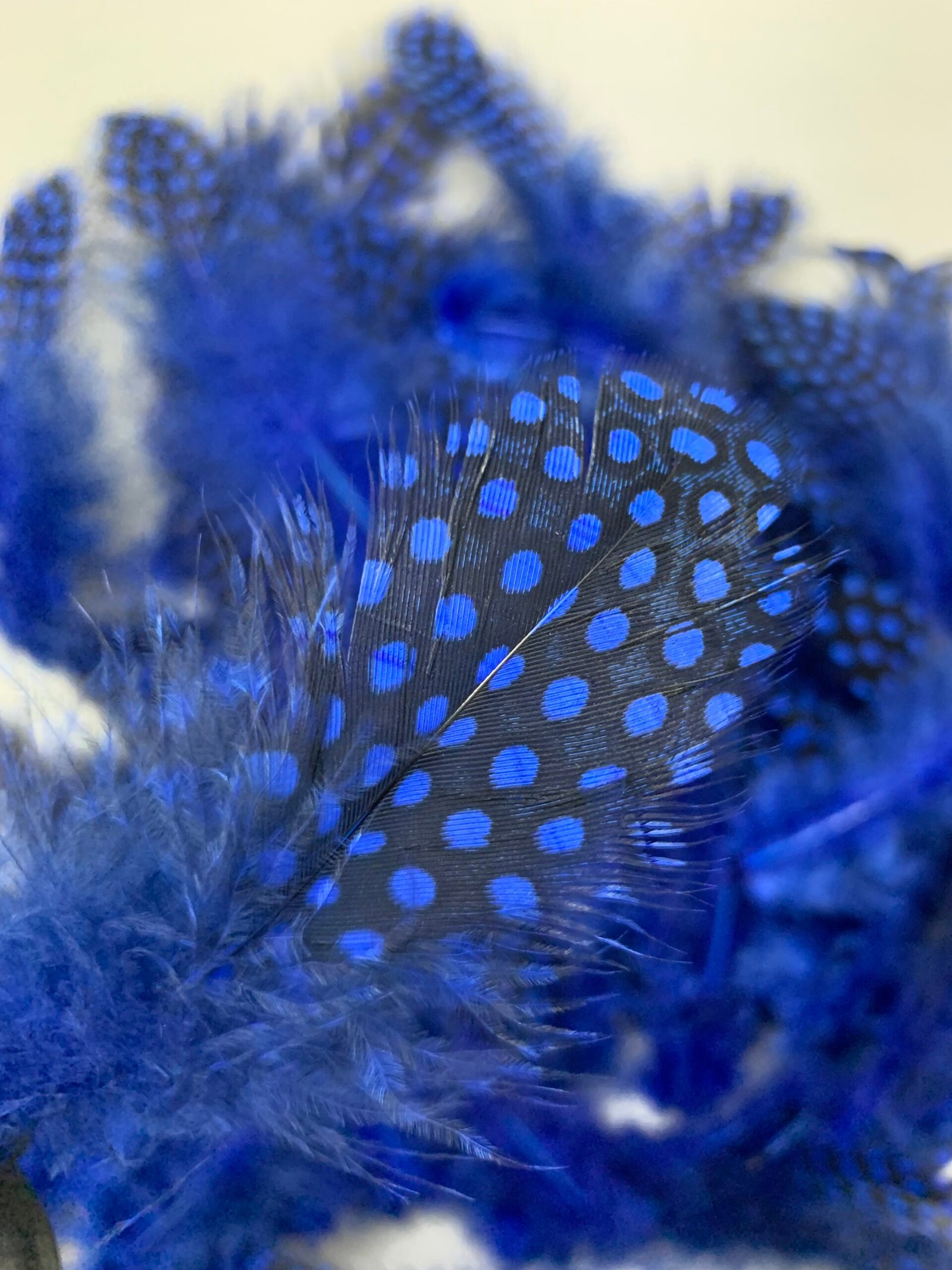Натуральне пір’я фазана в горох синього кольору — глибина та витонченість у кожному пір’ячку