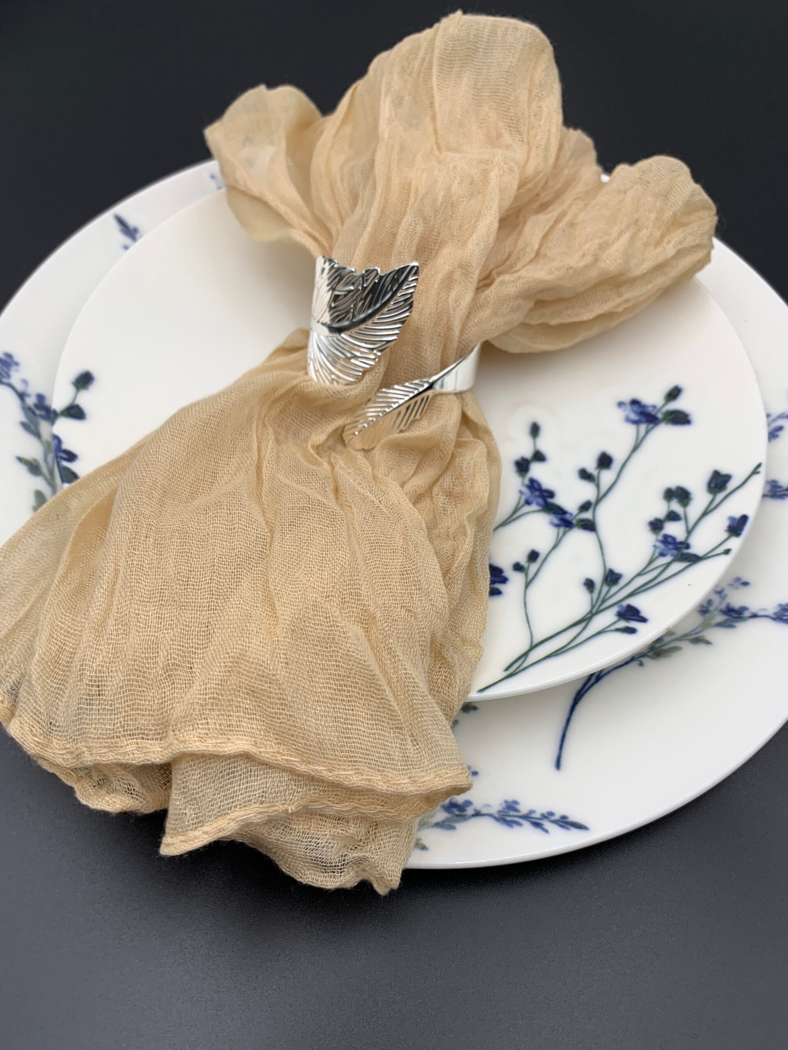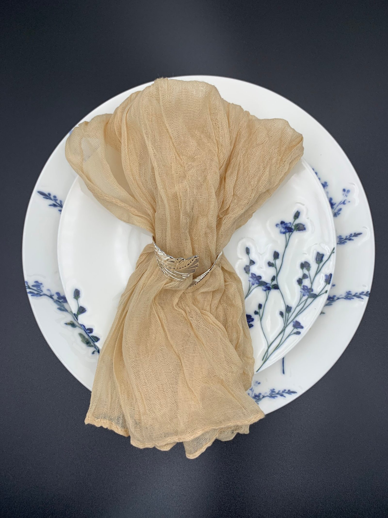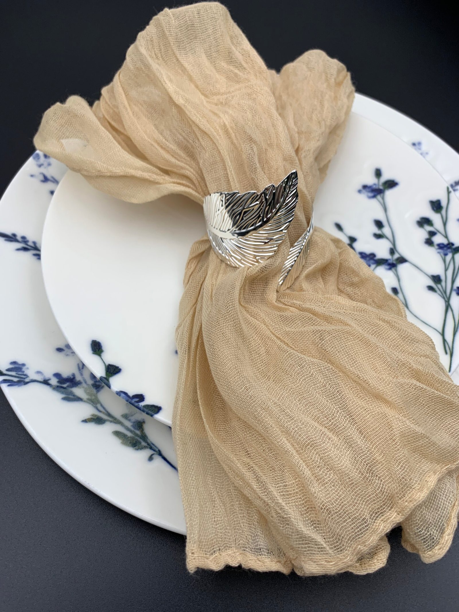 Розмір 50×50 см робить бежеву декоративну серветку багатофункціональною. Вона стане чудовим акцентом для святкової вечері, весільного банкету, фотосесії або ресторанного столу. Її можна складати у витончені фігури, використовувати під прибори чи як декоративну основу під композиції з квітів і свічок. Такий текстиль додає завершеності кожній деталі сервірування.