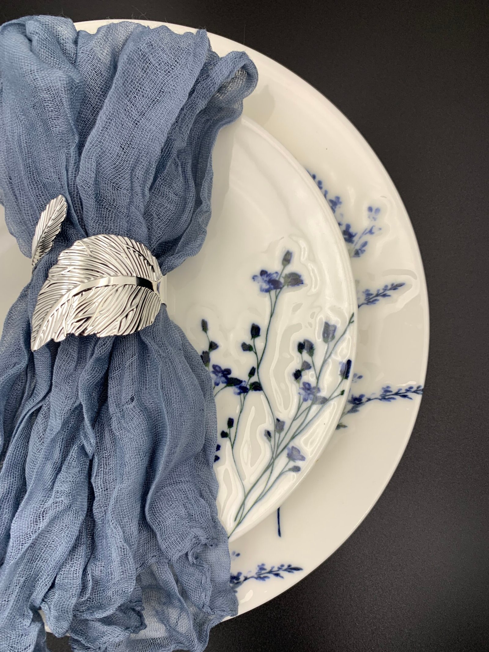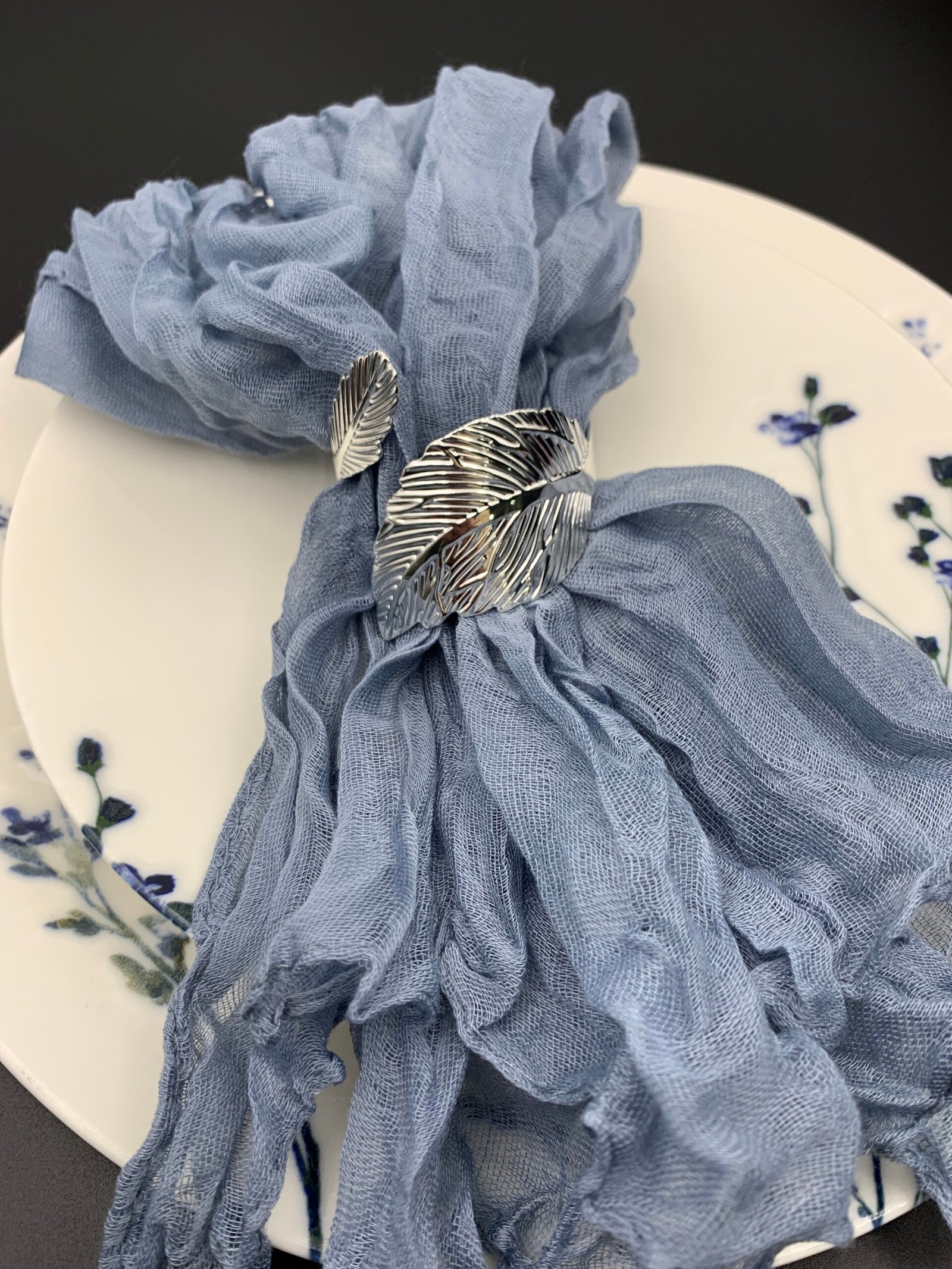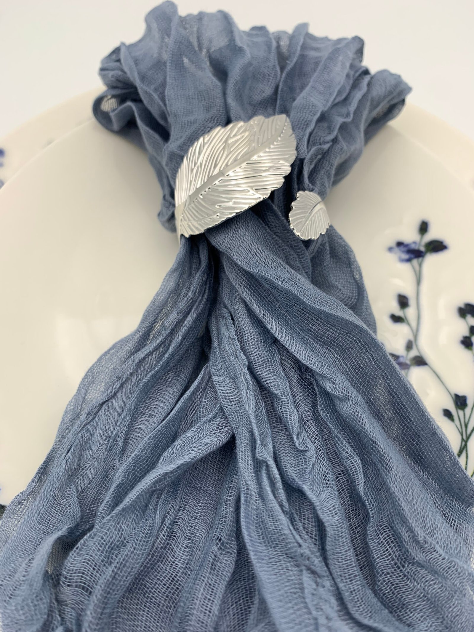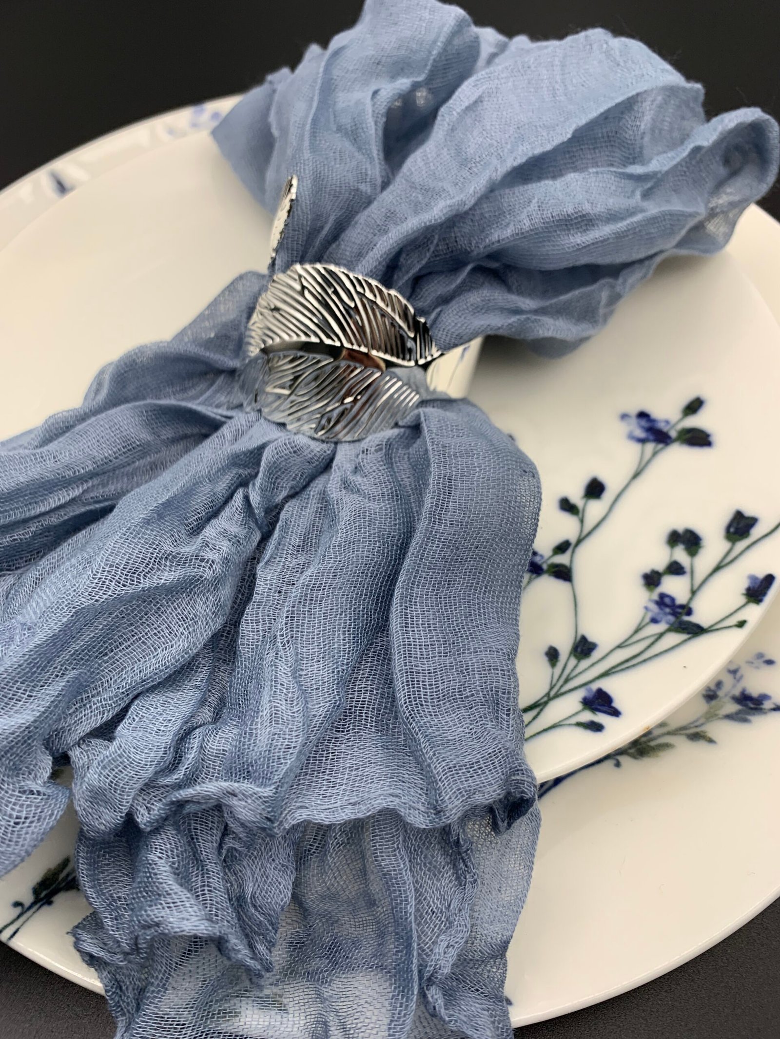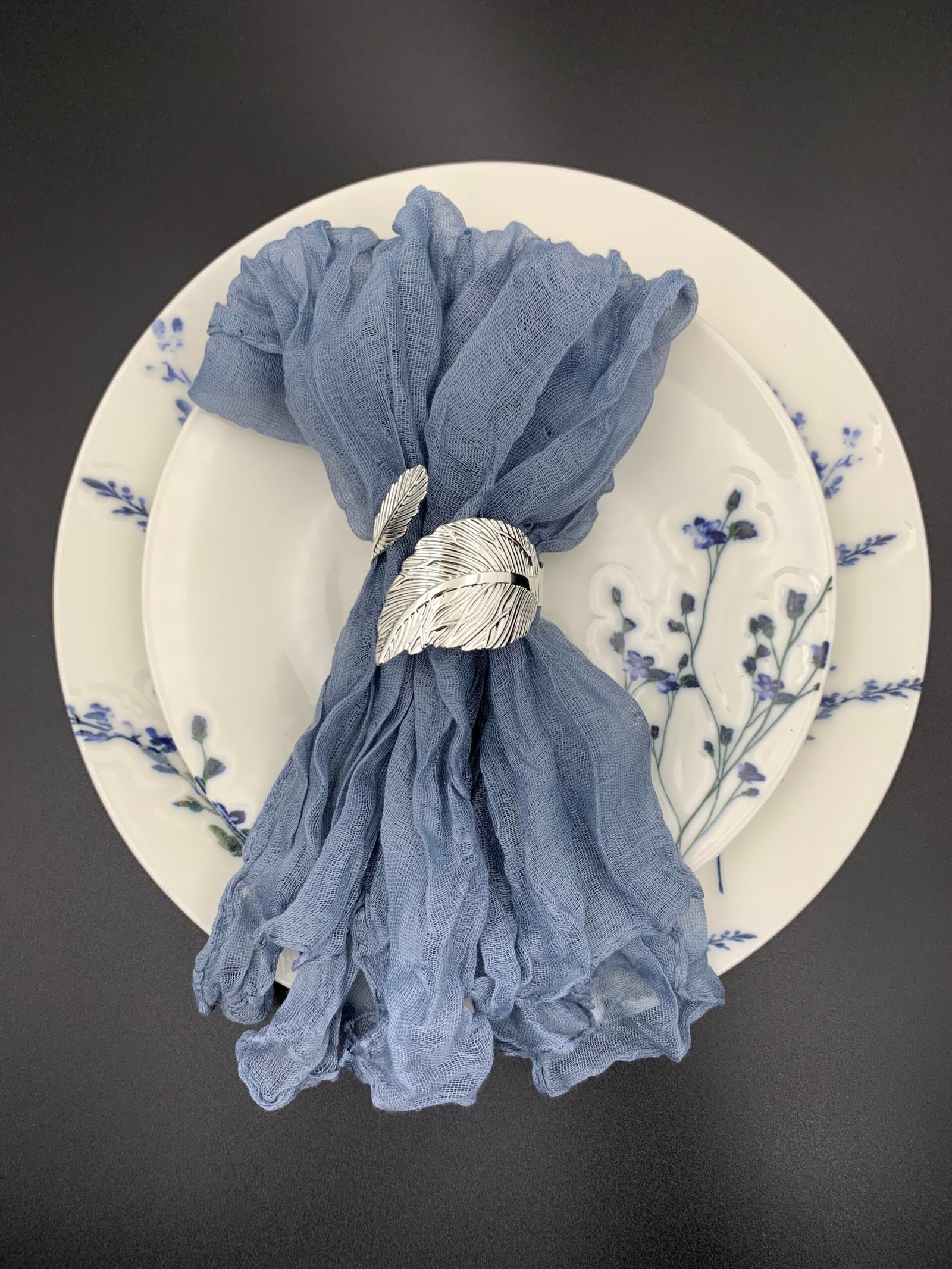 Сіро-синя декоративна серветка — це стильний елемент, що поєднує в собі стриману глибину сірого та холодну витонченість синього кольору. Вона створює візуальну гармонію на столі, додаючи йому вишуканості та спокою. Така серветка стане ідеальним рішенням для весіль, банкетів, фотосесій або домашніх вечерь, коли важливо підкреслити смак та увагу до деталей.