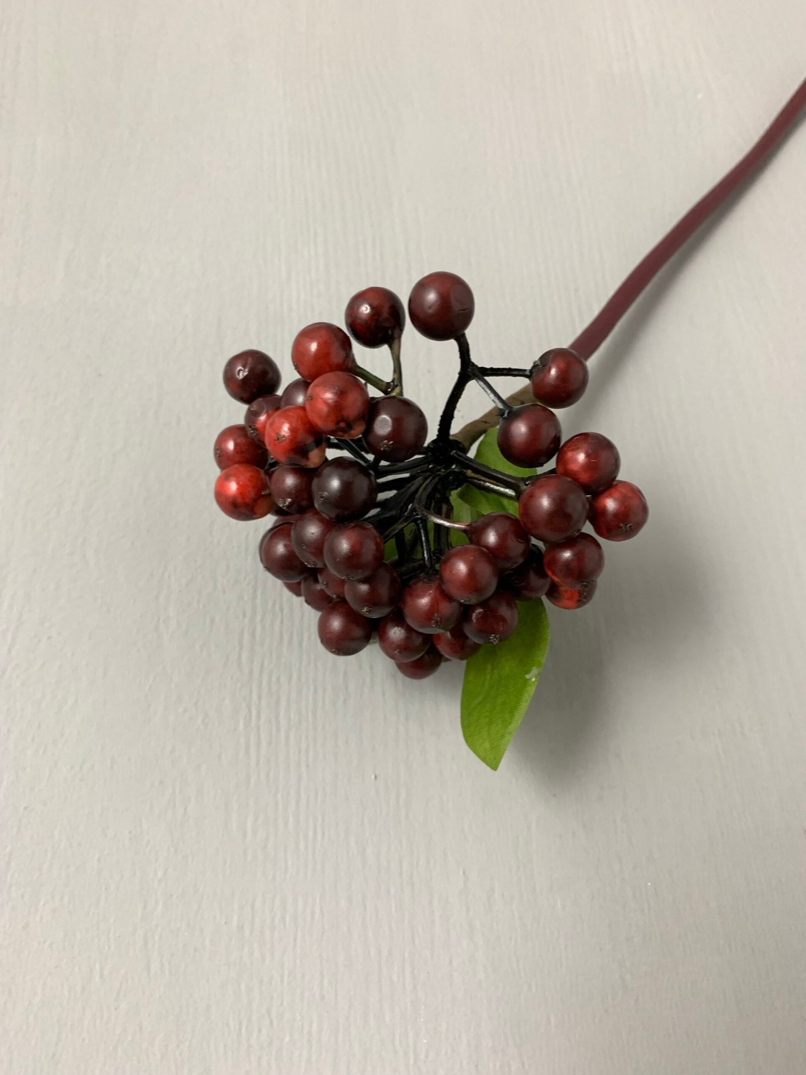 Штучні ягідки на гнучкій ніжці бордові, з листочком