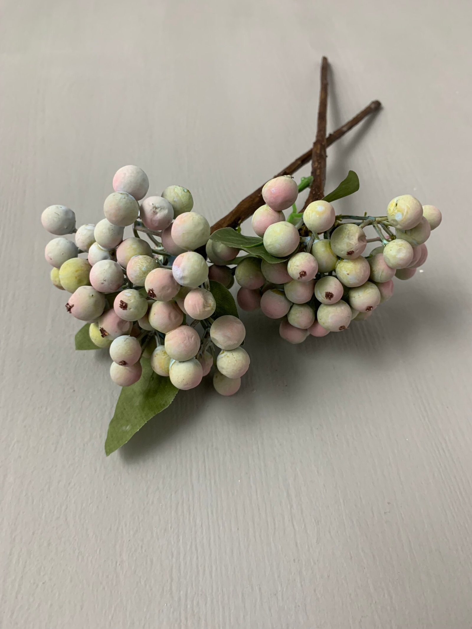 Вишуканий акцент для композицій: штучні ягідки рожево-зелені сизі на гнучкій ніжці