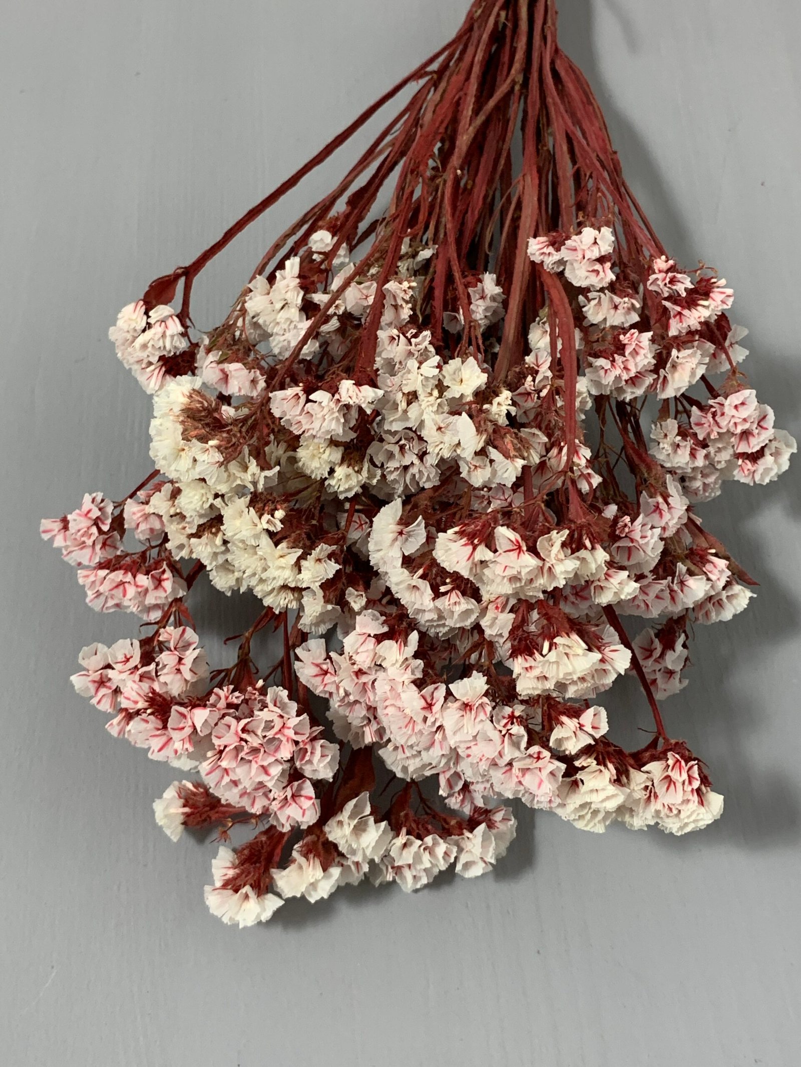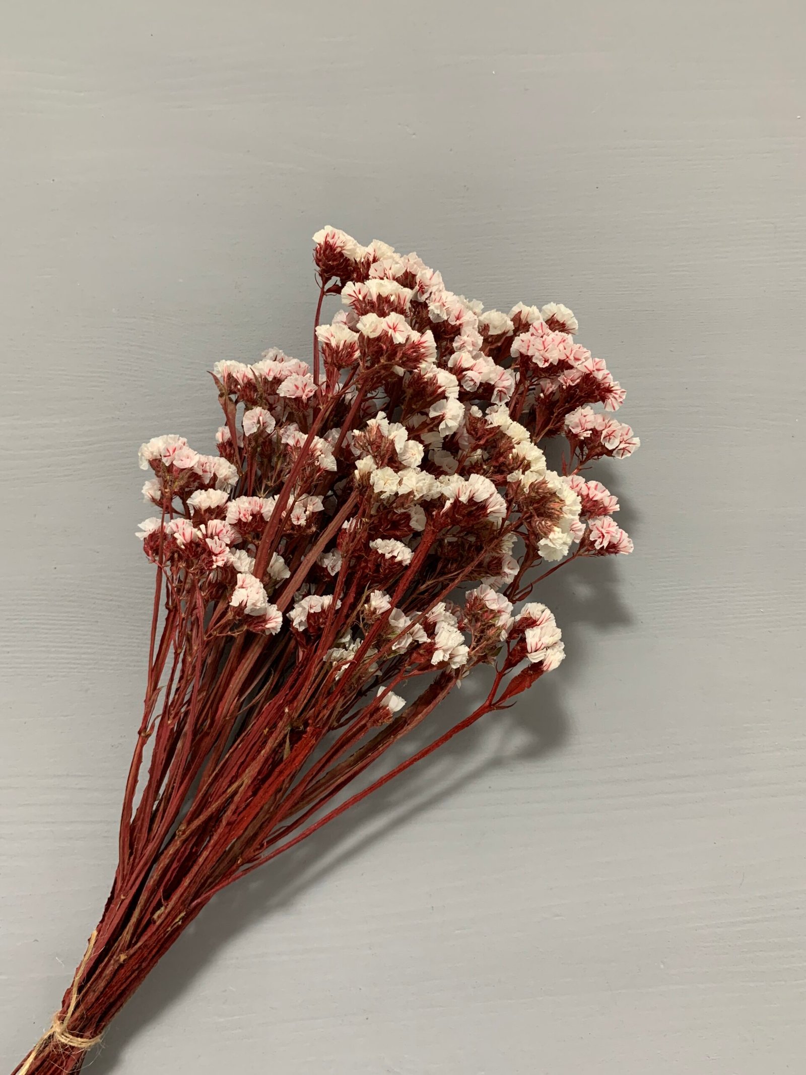 Статиця стабілізована біла на червоному стеблі — це витончена й довговічна квітка, що поєднує ніжність білого відтінку з виразністю червоного. Завдяки м’якій текстурі та універсальності використання, вона стане ідеальною основою для букетів, декору та інтер’єрних композицій.